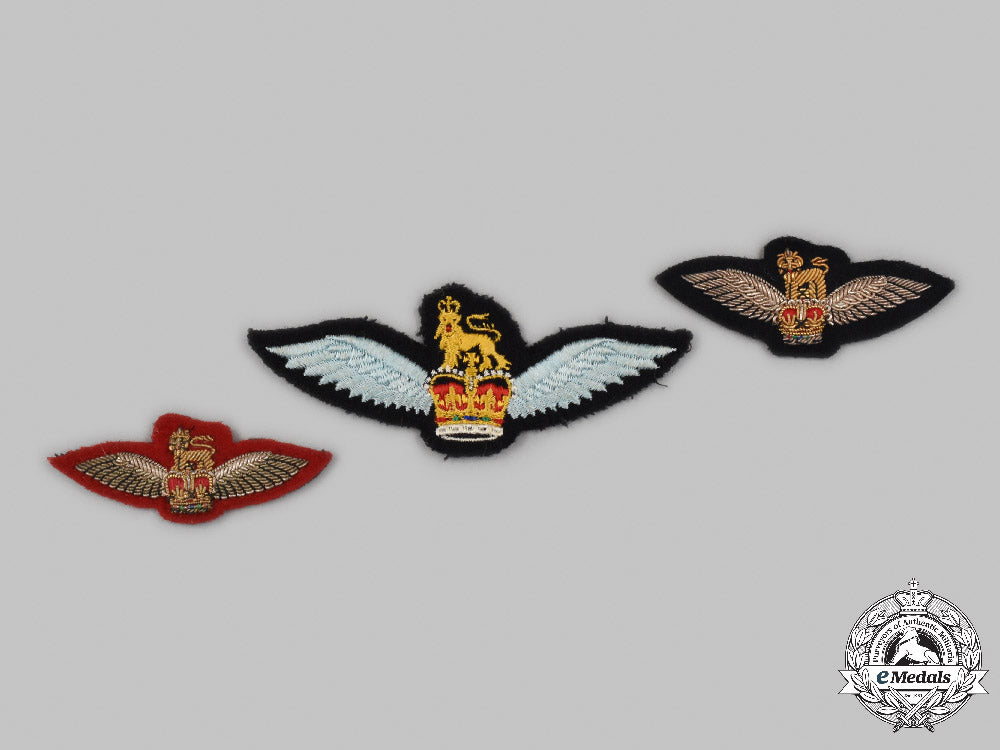 Canada, United Kingdom. Three British Army Glider Pilot Badges With Queen's Crown