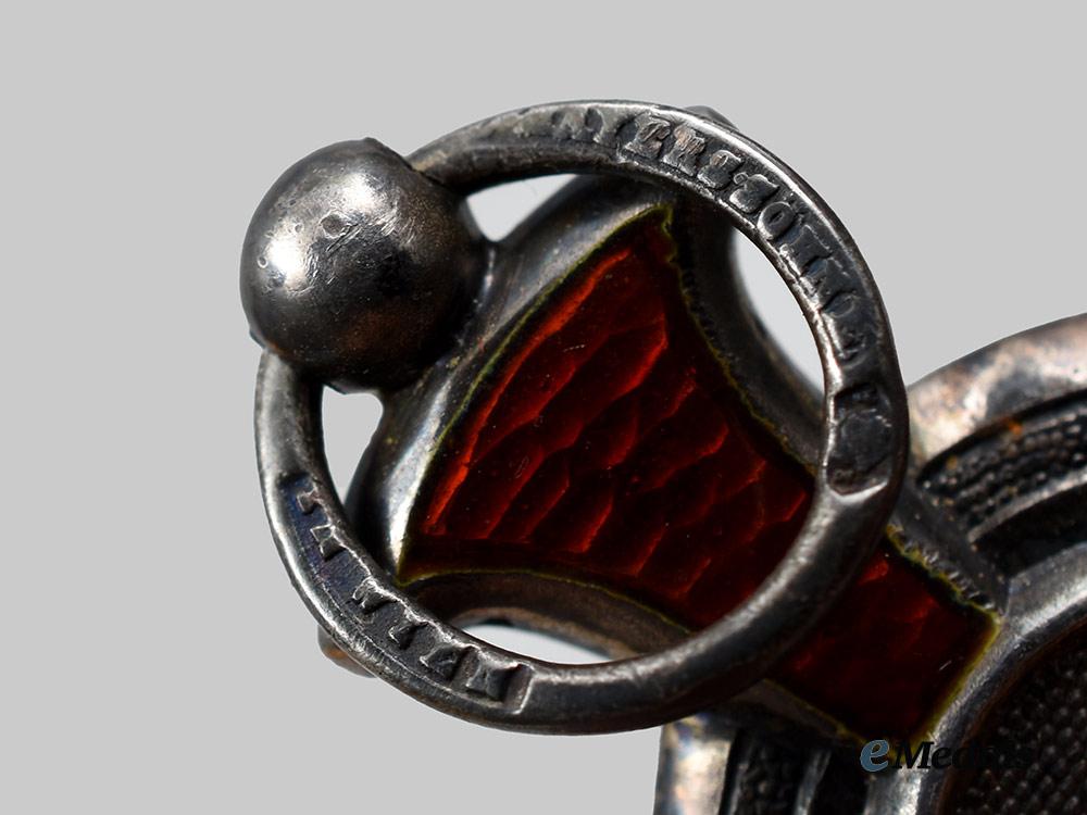 3. A Merit Cross “1849” IV. Class. (Verdienstkreuz “1849”). Instituted December 2nd, 1849. (Third Period: 1914-1918 issue). Constructed of silver with red enamels, consisting of a Ruppert Cross with red enameled arms, the obverse with a central medallion bearing a central gilt monogram of Franz Joseph I, circumscribed by an inscription of “Viribus Unitis” (United Forces) in capitalized Latin, the reverse with a central medallion bearing the institution year of “1849”, on an affixed loop and swivel ring for suspension from its period original tri-fold ribbon, marked “Vincent M. Söhne, Wien” on the loop, measuring 29.5 mm (w) x 33.2 mm (l), weighing 6.38 grams, in near extremely fine condition.