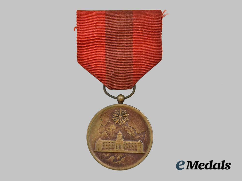 (Kokuseichōsa kinen medaru / 国勢調査記念メダル). Instituted in 1940. In bronze, measuring 30 mm in diameter, very light contact, original ribbon with hook and eye, near extremely fine.