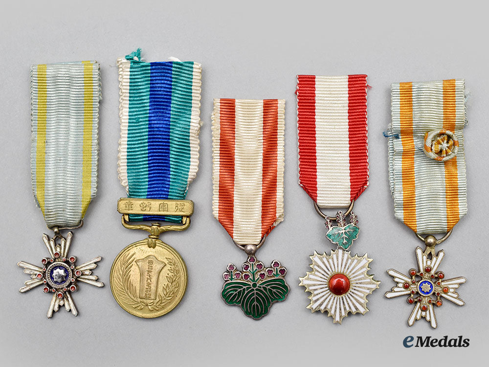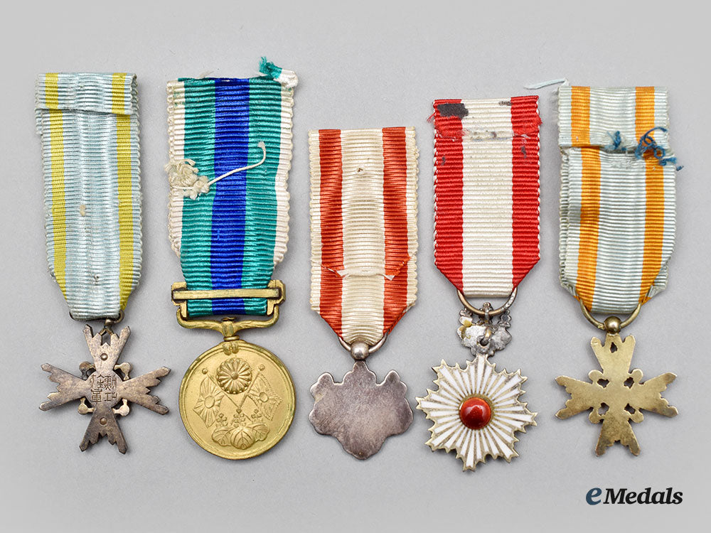 5. Russo-Japanese War Medal 1904-1905 (日露戦争勲章 / Nichirosensō kunshō): in bronze gilt. Intact enamels, original ribbons, extremely fine.