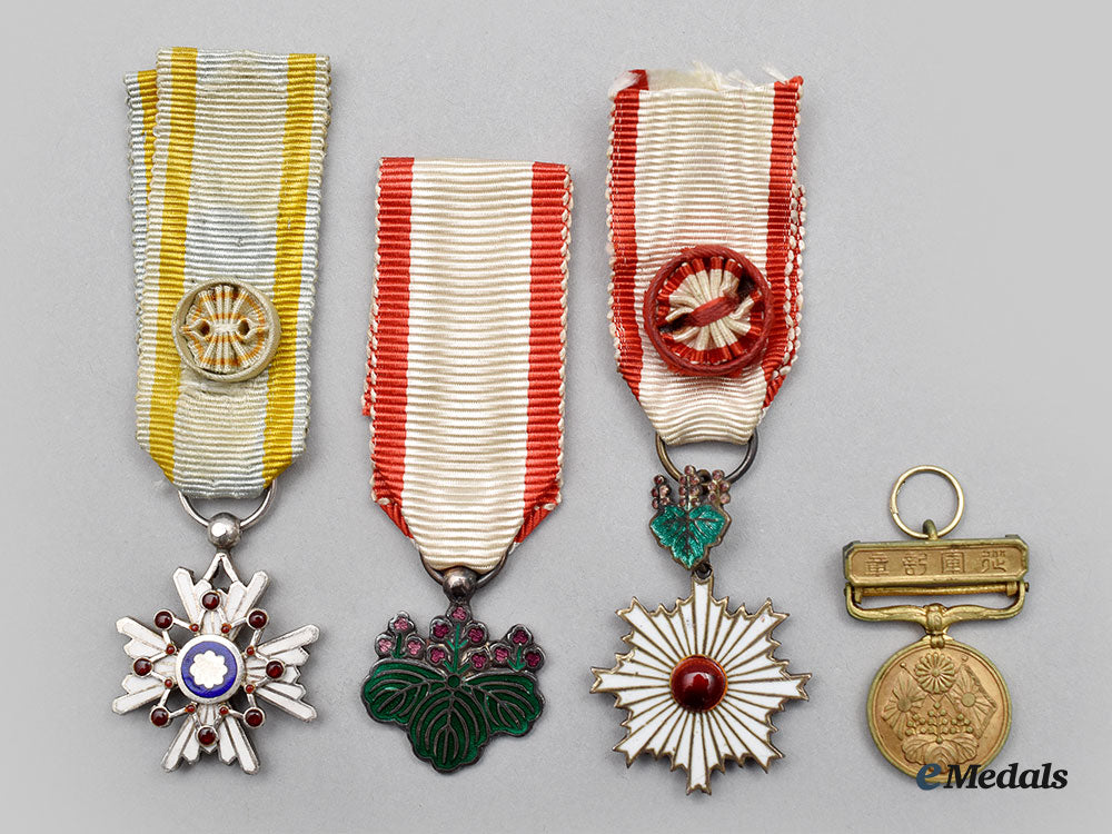 1. Order of the Rising Sun, IV Class with Large Rosette (旭日小綬章 / Kyokujitsu_sho): in silver with red, white and violet enamels.