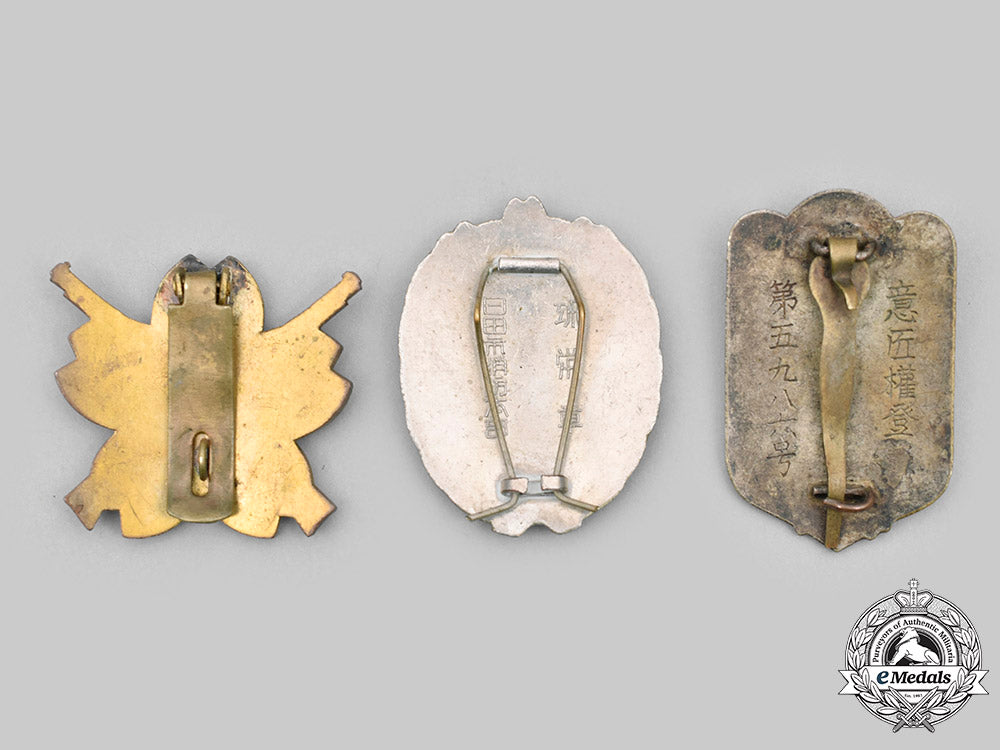 Japan, Empire. A Lot Of Three Badges And A Homare Game