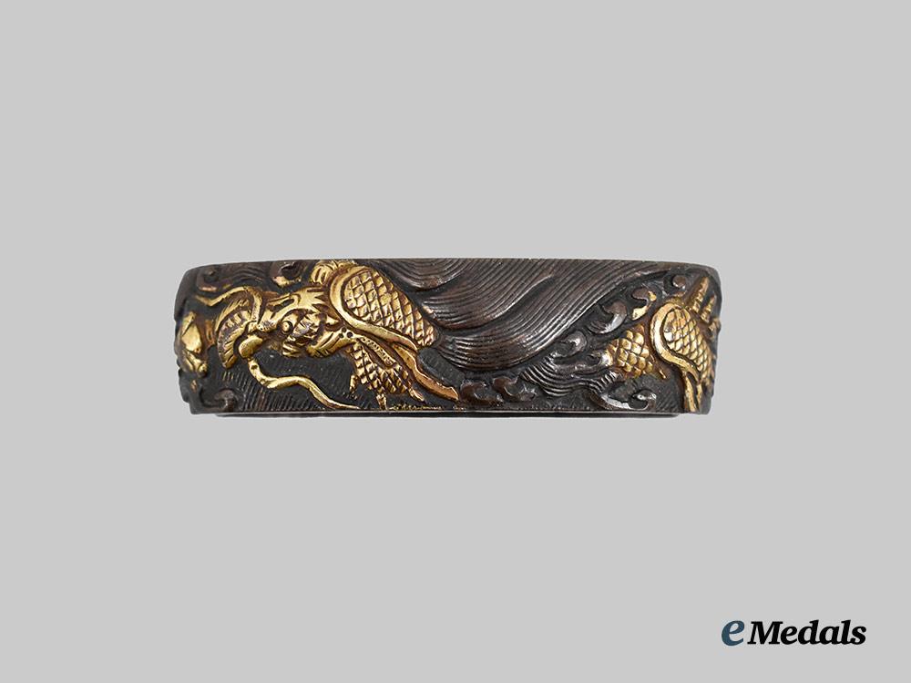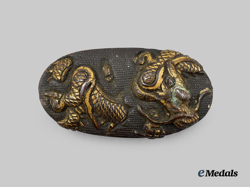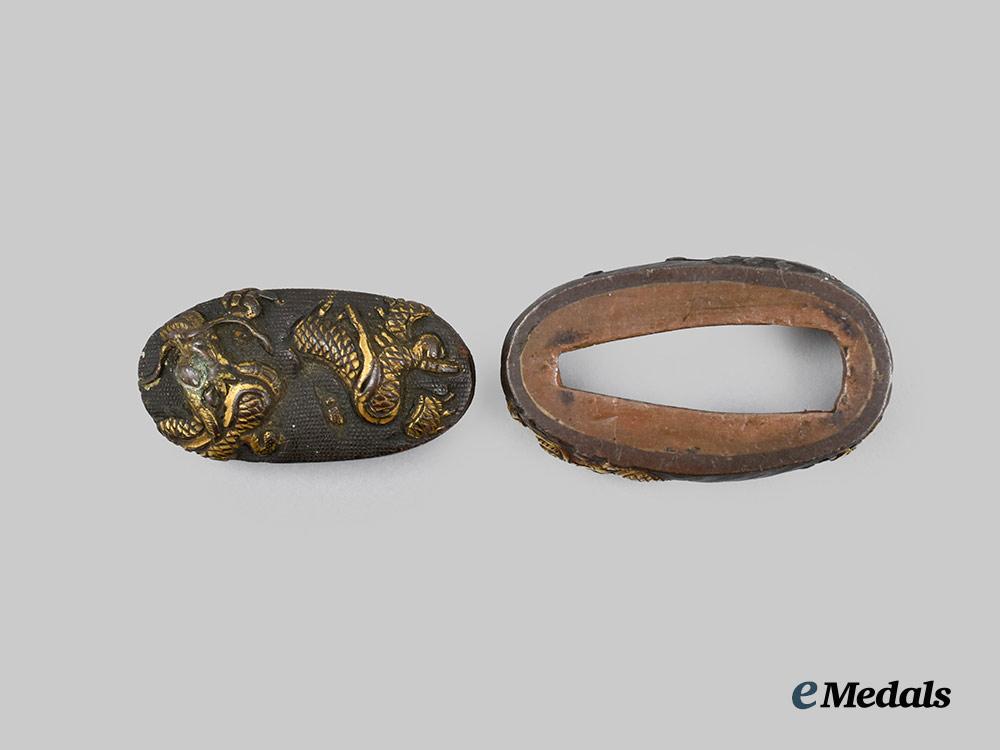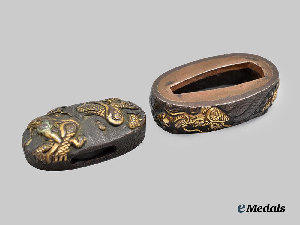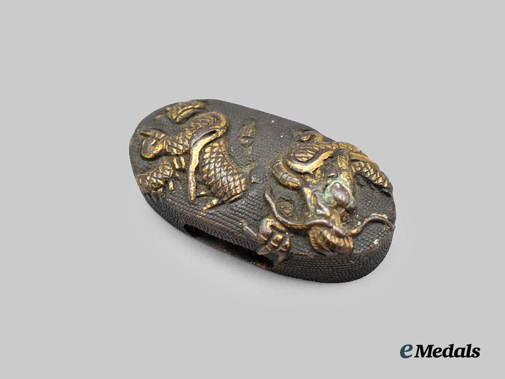 Japan, Empire. A Shakudo Dragon Fuchi & Kashira (Hilt Collar & Pommel)