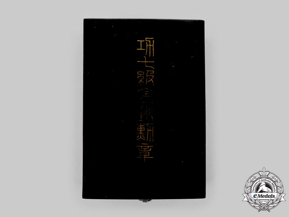 Footnote: The Order of the Golden Kite was an order of the Empire of Japan, established on February 12, 1890 by Emperor Meiji "in commemoration of Jimmu Tennō, the Romulus of Japan." It was an exclusively military award, conferred for bravery, leadership or command in battle. The order consisted of seven classes. Enlisted rank soldiers were eligible for the 7th to 5th classes, non-commissioned officers were eligible for the 6th to 4th classes, junior officers for the 5th to 3rd classes, field grade officers for the 4th to 2nd classes and general officers for the 3rd to 1st classes. It was officially abolished by the Supreme Commander of the Allied Powers of Occupied Japan in 1947 after the Second World War.