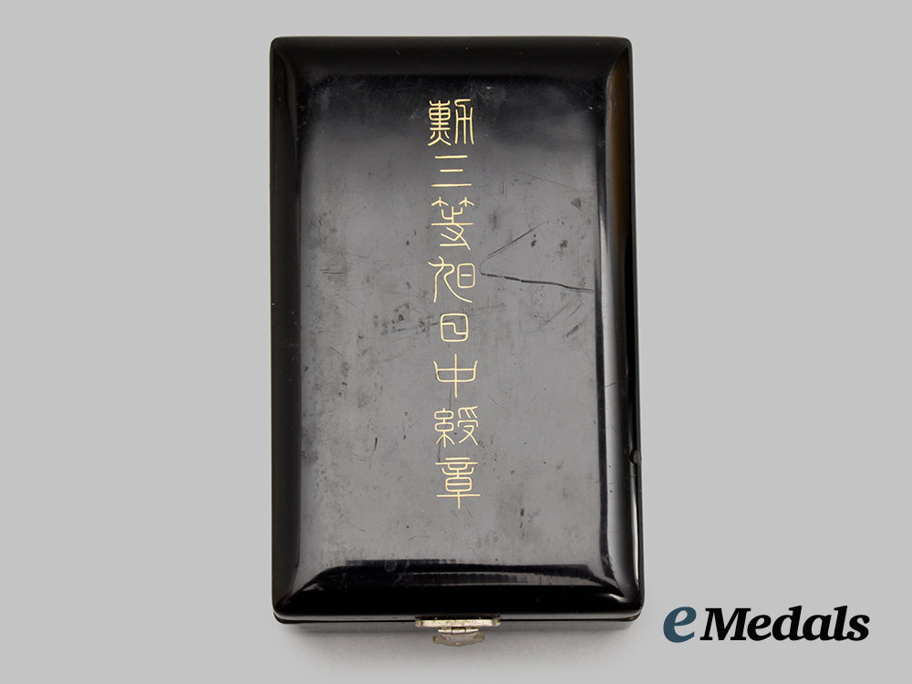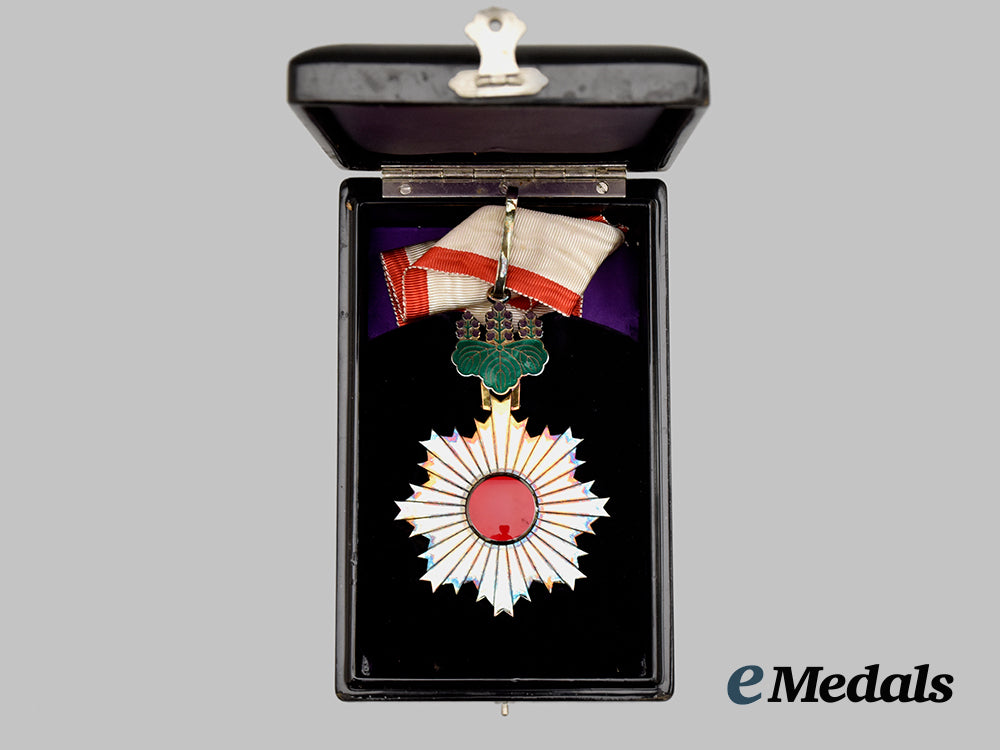 Footnote: The Order was instituted 4th of October 1875 by Emperor Meiji. The Order of the Rising Sun is awarded to people who have rendered distinguished service to the state in various fields except military service.