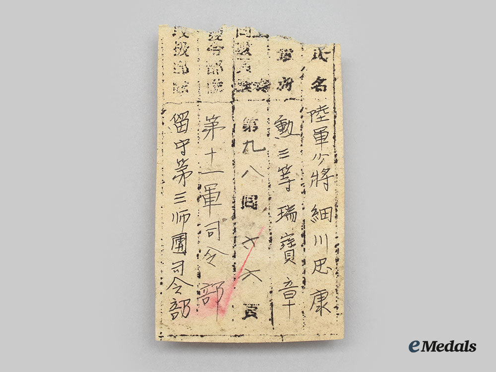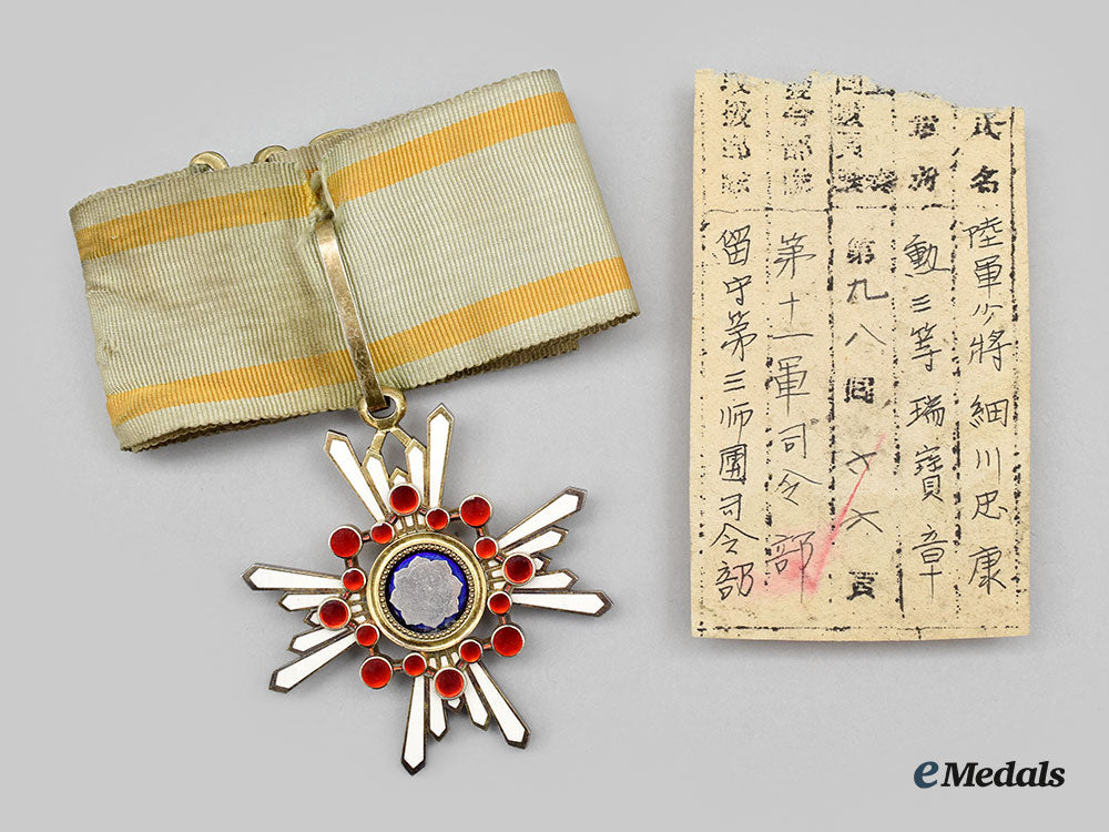 Japan, Empire. An Order Of The Sacred Treasure, Iii Class Commander With Award Document