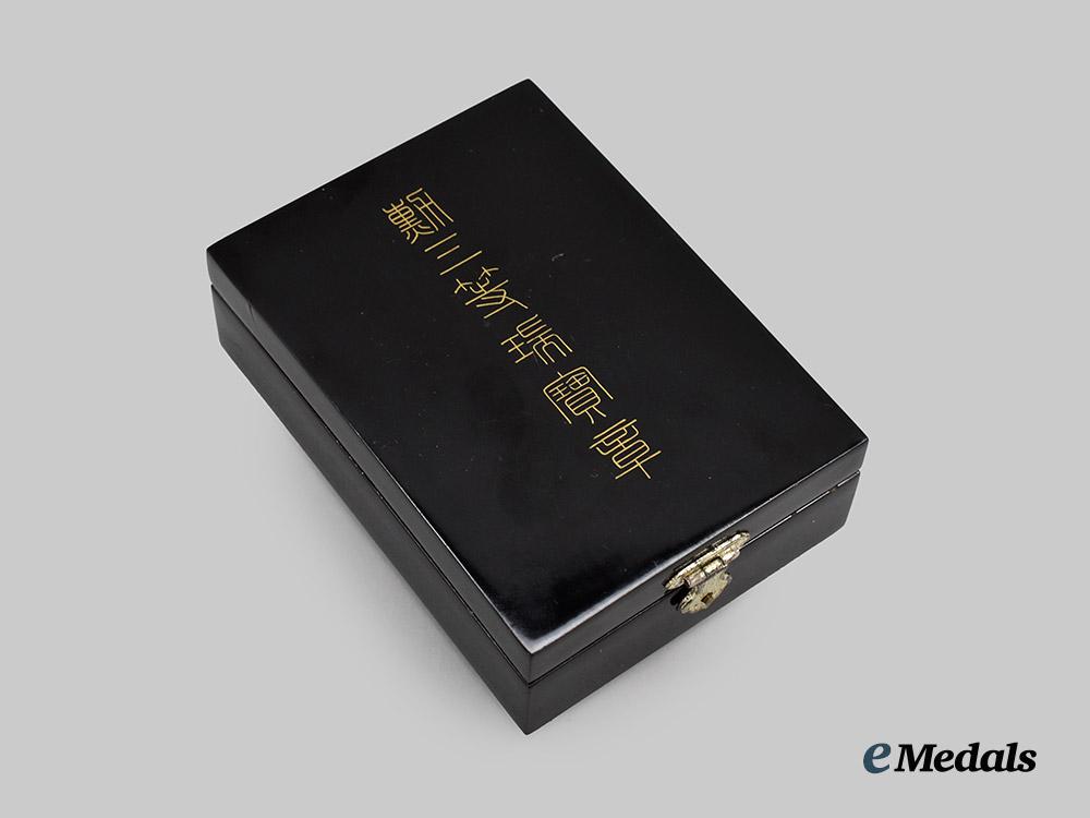 Footnote: The Order of the Sacred Treasure was instituted on the 4th of January 1888 by Emperor Meiji. This Order was established in recognition of long, faithful civil or military service, or for meritorious civil or military service. It is conferrable upon men and women, who became eligible for this award in 1919. It may also be awarded posthumously.