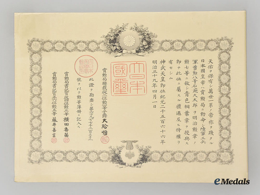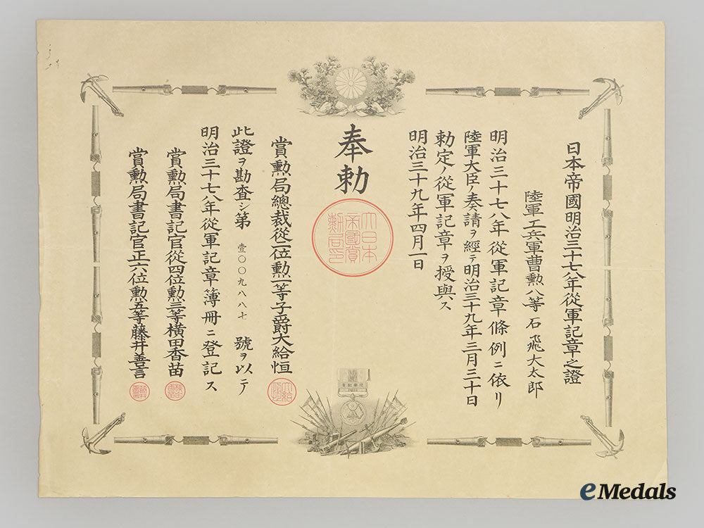 Japan, Empire. Four Wartime Award Documents Issued To Members Of The Army