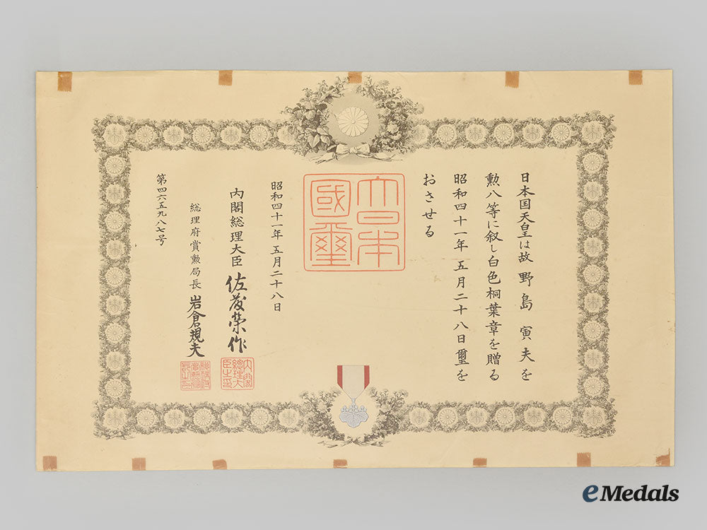 Japan, Empire. Three Order Of The Rising Sun Award Documents