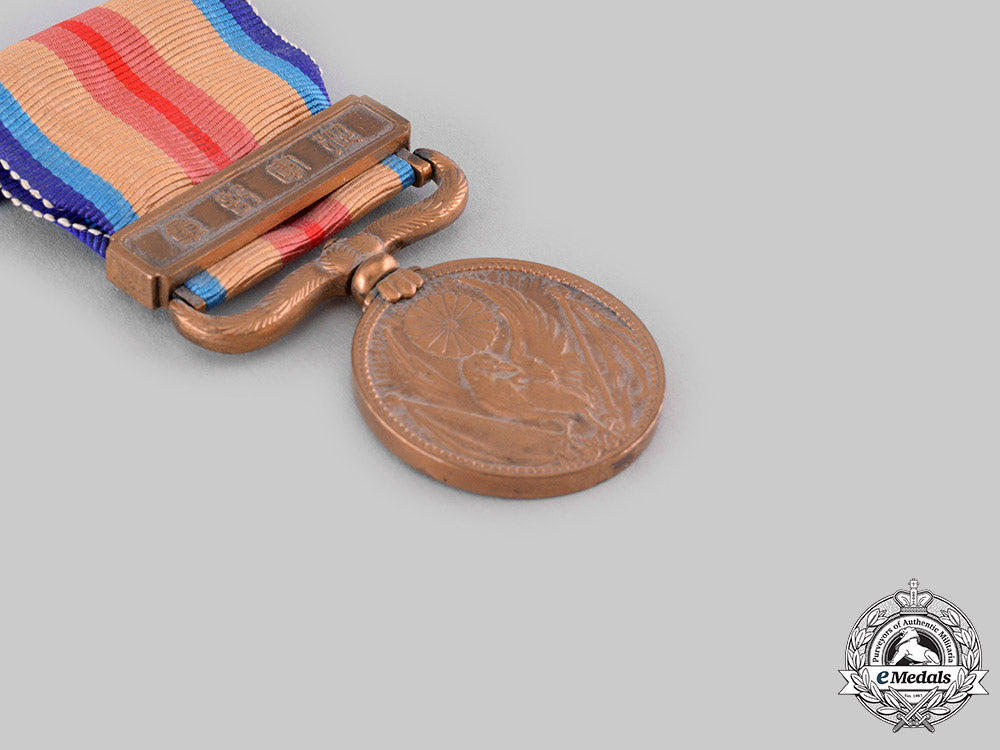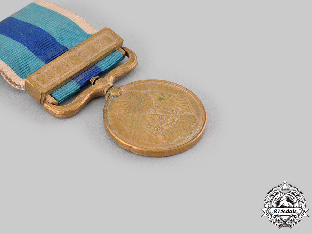 Footnote: The Russo-Japanese War Medal was established by Imperial Edict No. 51 on March 31, 1906 and awarded for participation in the war between February 8, 1904 and September 5, 1905. The China Incident War Medal was established by Imperial Edict No. 496 on July 27, 1939, amended by Edict No. 418 of 1944 and abolished by Government Ordinance No. 177 of 1946. It was awarded for participation in or support of the invasion of China on July 7, 1937. The occupation ended with Japan's surrender in 1945. It was not to be awarded to those who received the Great East Asia War Medal.