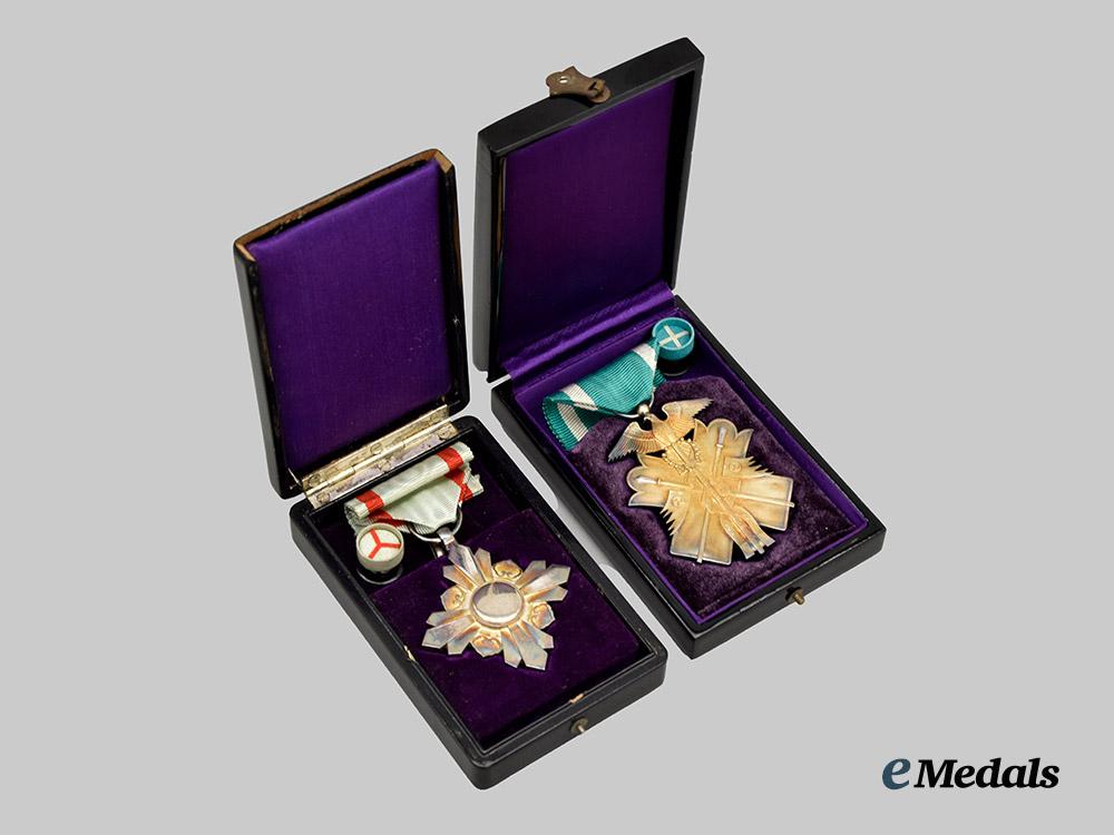 Japan, Imperial; Manchukuo. An Order of the Golden Kite, VII Class, and an Order of the Auspicious Clouds, VIII Class