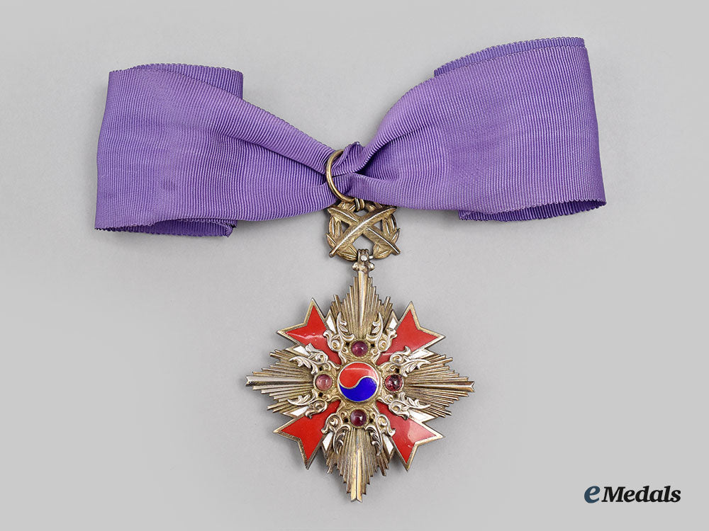Footnote: The Order of Diplomatic Service Merit was instituted on July 25, 1963, amended in 1967, with the highest grade added in 1973. It is awarded for meritorious service to the extension of national prestige overseas and to the promotion of friendship with other nations, in six grades: with Class 1 being divided into 2 grades, the first only being awarded to Korean diplomats: I Class Grade I Grand Gwanghwa (Badge and Star), I Class Grade II Grand Gwanghwa (Badge and Star), II Class Heung-In Medal (Badge and Star), III Class Sungrye Medal, IV Class Chang-Eui Medal and V Class Sugjeong Medal.