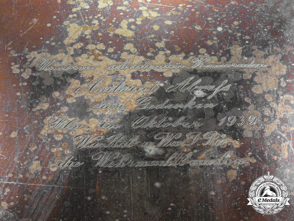A Farewell Gift To Resigning Wehrmacht Senior Administrative Official; Dated Oct. 1939