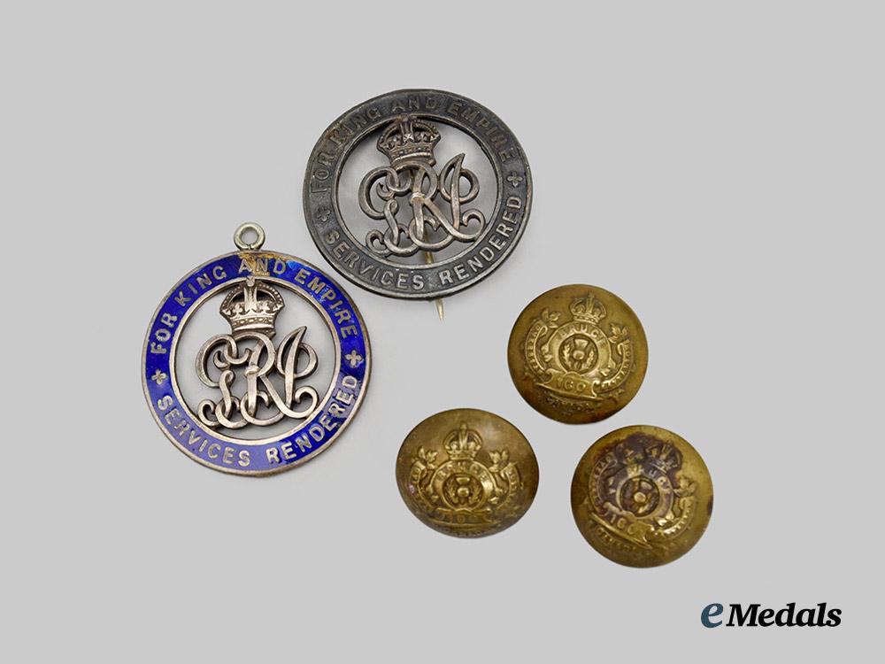 A For Services Rendered Badge, in silver and blue enamels, reverse marked C16028, measures 33.0 mm (w) x 37.6 mm (including integral suspension), enamel damage evident, remains very fine.