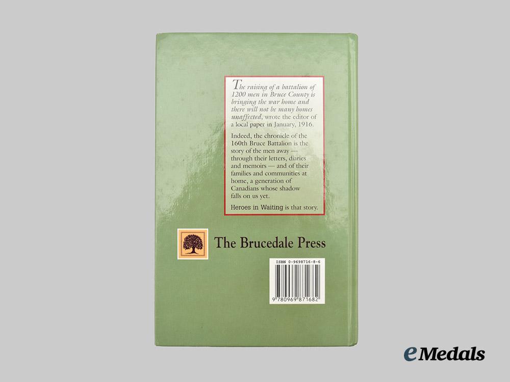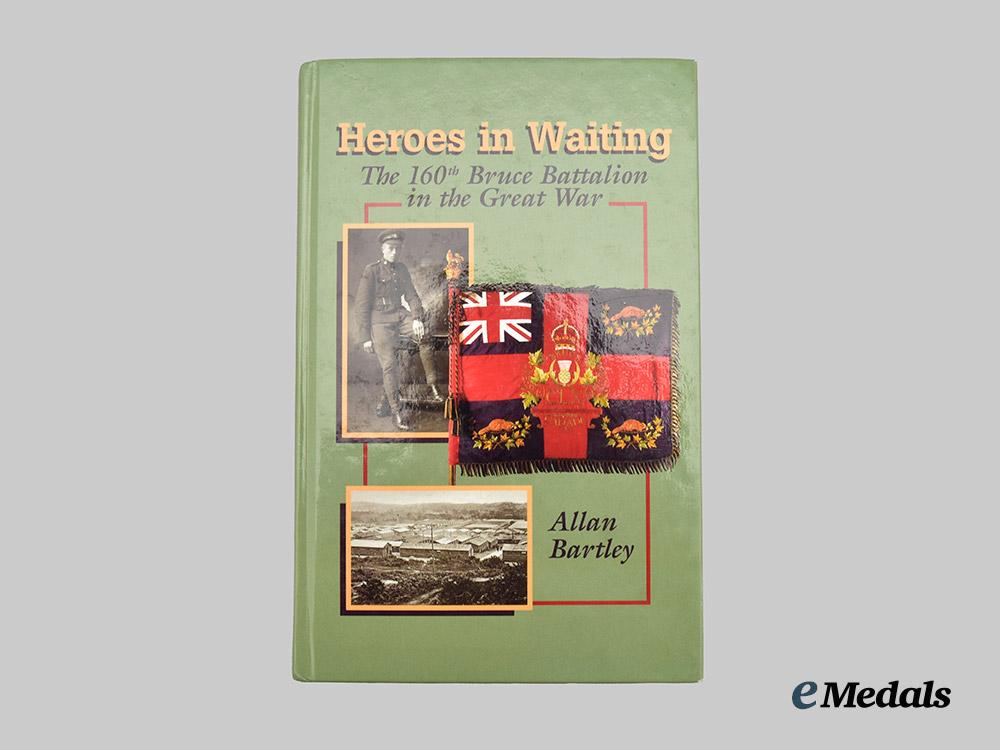 Accompanied by “Heroes in Waiting The 160th Bruce Battalion in the Great War” by Allan Bartley, hardcover edition, interior page inscribed “Happy Fiftieth Birthday Peter! Best Wishes, Allan Bartley”, a 208 page history of the battalion, in extremely fine condition.