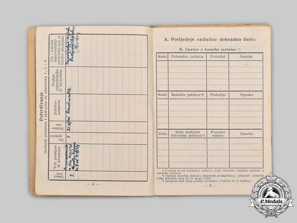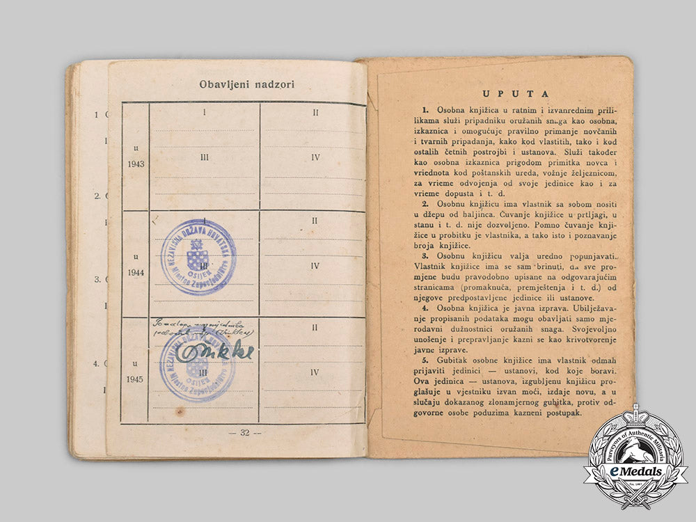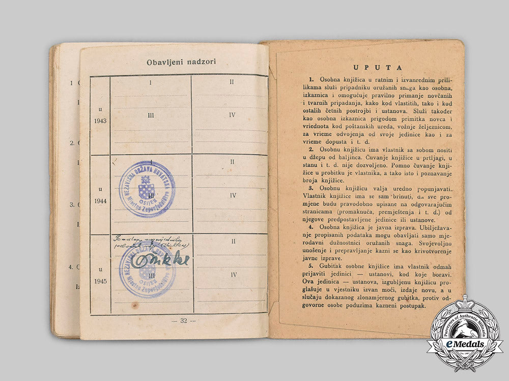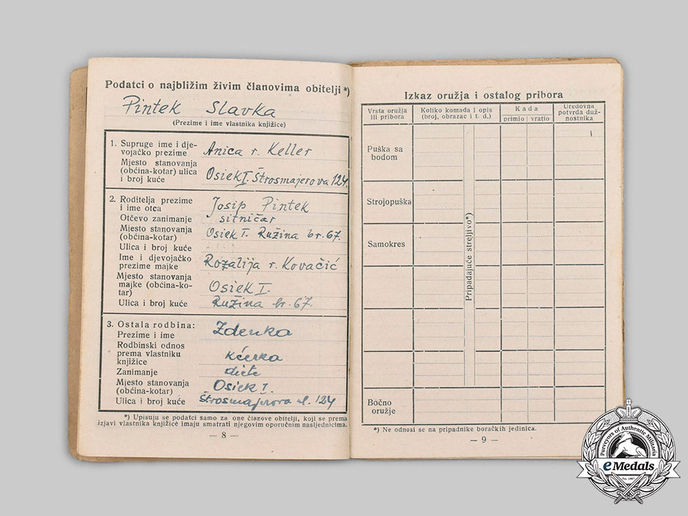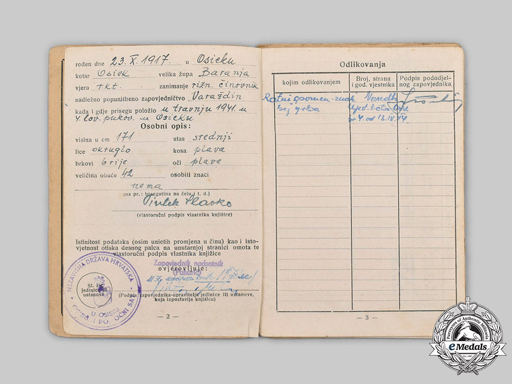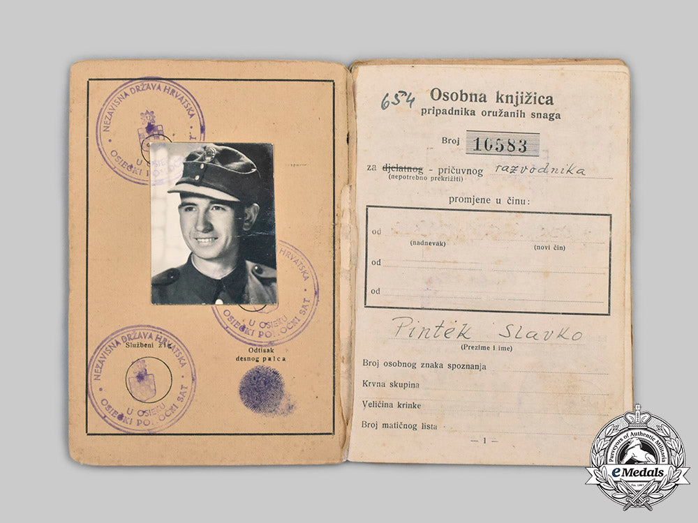 Croatia, Independent State. An Army Identity Booklet To Slavko Pintek