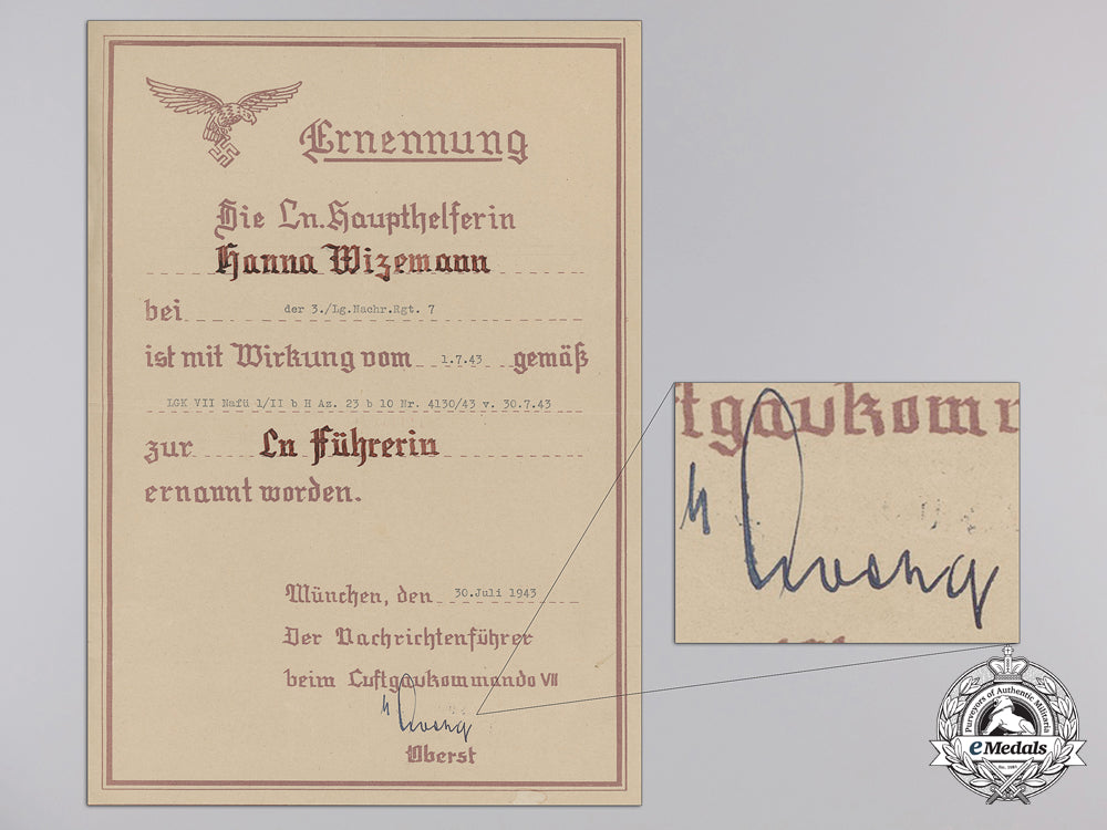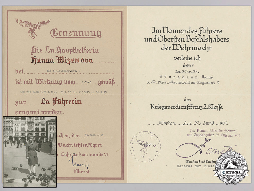 Germany, Luftwaffe. The Award Documents & Photographs To Female Air News Leader; 3./Luftgau Nachrichten Regiment 7