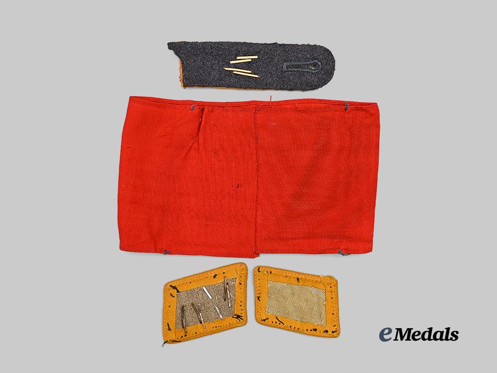 3. An NSFK Mann shoulder strap, constructed of dark grey wool, trimmed with golden-yellow piping, and pinned with metal numerals “16”, unmarked, measuring 30 mm (w) x 110 mm (l), in uniform-removed and near extremely fine condition.