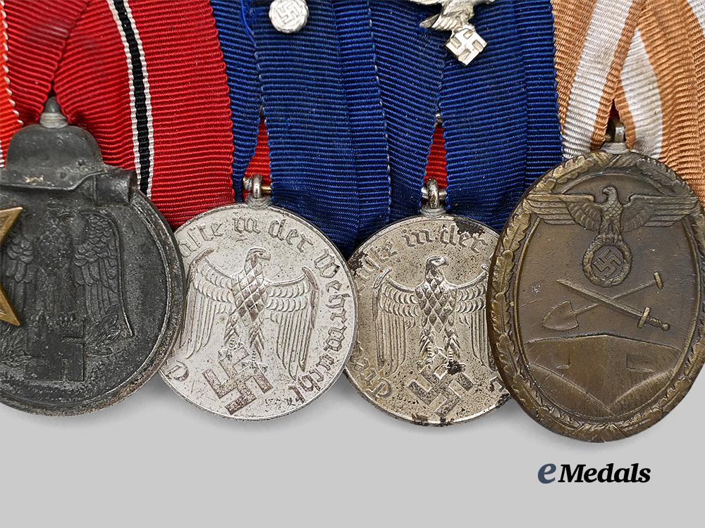 (Ordensschnalle). A medal for Wehrmacht long service to an Eastern Front combatant featuring an unusual (and non-regulation) combination of six awards, including: