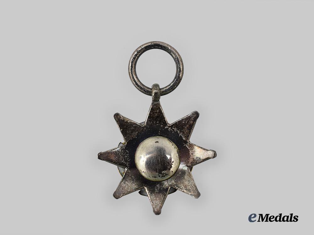 Accompanied by a miniature of the order, in silver, gold and enamels, measures 15.6 mm, with a large suspension ring, light wear, extremely fine; and a boutonniere in the form of a ribbon with two crown devices.