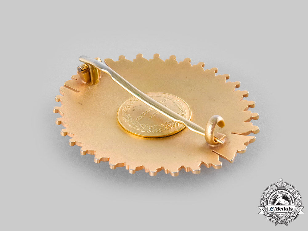 (Orden al Mérito por Servicios Distinguidos). Instituted in 1950. Four-piece construction, insignia in silver gilt with red and white enamels, mounted to a silver gilt base, maker marked "ZULOETA S.A. LIMA-PERU" on the reverse cartouche, measuring 74 mm (w) x 82 mm (h), vertical pinback, intact enamels, extremely fine.