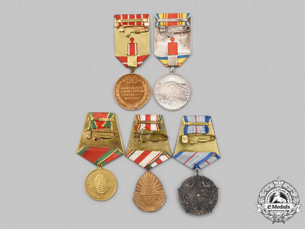 Romania, People's Republic, Socialist Republic. A Lot Of Five Medals