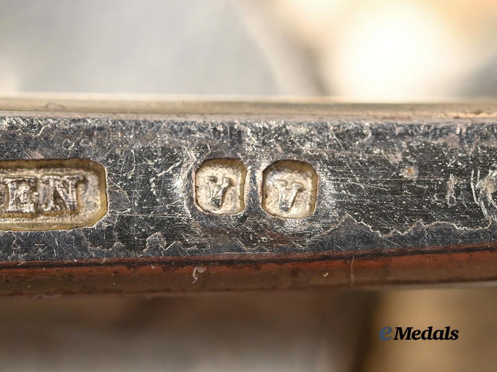 (Редак Таково). Instituted on 22 May 1865 by Prince Michael III Obrenovich. Civil Division. (Issued 1878-1903). In silver, an eight point star of faceted rays, the the obverse medallion features a silver gilt, white-enamelled Maltese Cross tipped with golden ball finials, between the arms is a silver gilded Cross of St. Andrew, with a red enamelled central medallion with the golden crowned cipher of Prince Milan IV, encircled by a blue-enamelled riband bearing an inscription in Old Church Slavonic meaning “For Faith, Prince, and Fatherland,” encircled by an oval silver gilt and green-enamelled palm wreath, the reverse with vertical pin assembly marked C.F.ROTHE and WIEN denoting Rothe manufacturer, with the base marked presenting an Austrian silver mark and F.R maker mark, measures 77.2 mm (w) x 83.0 mm (h), weighs 59.24 grams, small hairline cracks in the white enamel, two nuts missing from the rivets on the reverse, remains in extremely fine condition.