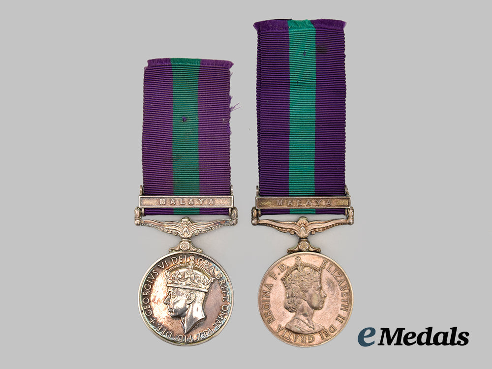 United Kingdom. Two General Service Medals with Malaya Clasps