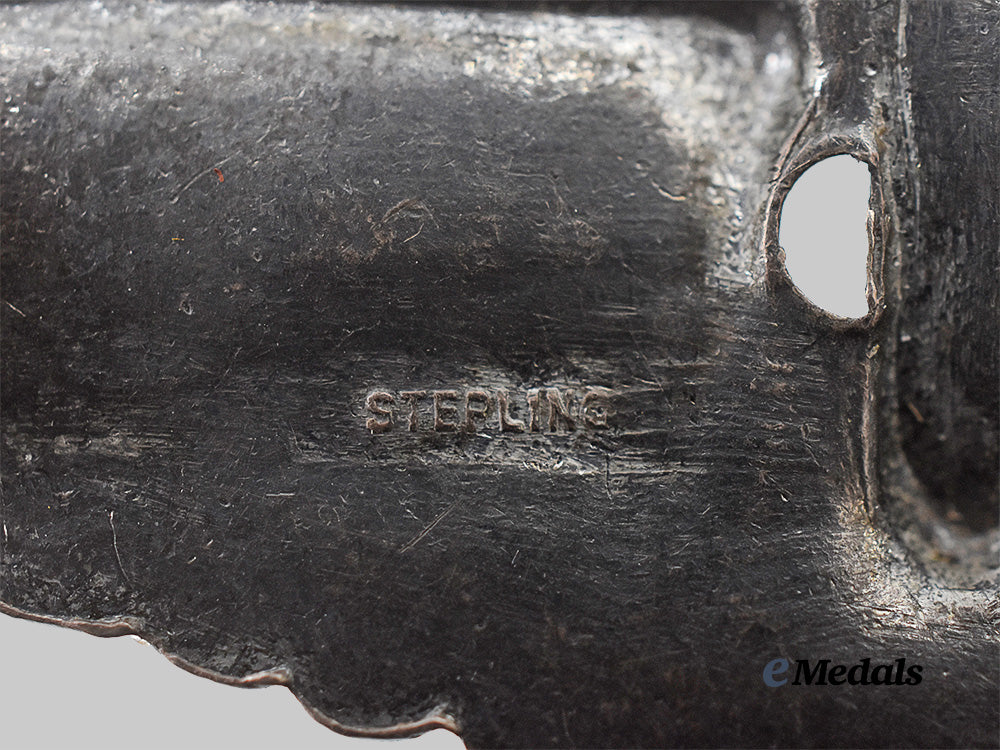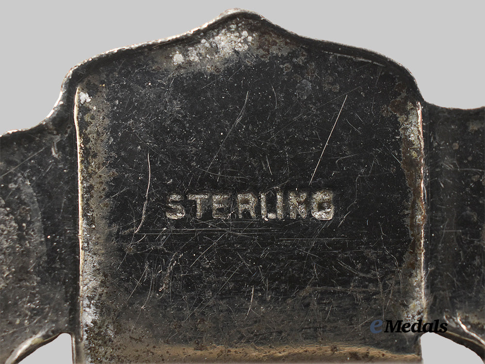 2. Army Air Force Aerial Gunner Badge: in silver, marked “STERLING” on the reverse, measuring 75.5 mm (w) x 24.9 mm (h), reverse bears two pins with butterfly clips, lovely and dark patina, very fine.