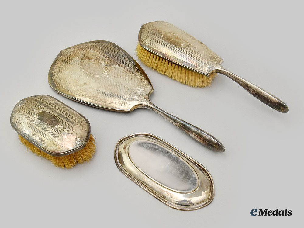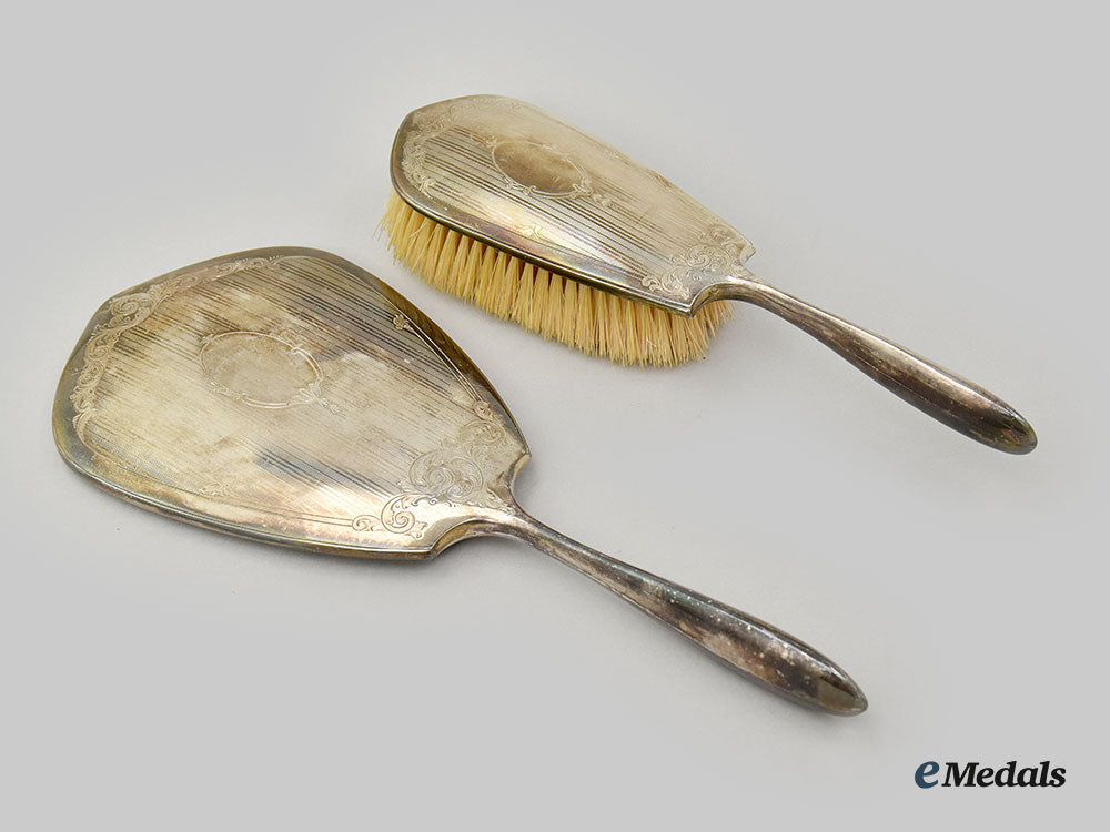 Canada, Dominion. A Vanity Mirror, Handheld Brush & Brush Set, By Birks