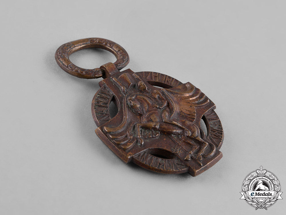 Czechoslovakia (Republic): Revolutionary Cross 1918 (in bronze, maker marked "AB" on the reverse, measuring 41.8 mm (w) x 63 mm (h) inclusive of its ring suspension, surface wear, incorrect ribbon); Italy (Kingdom): Medal for Italian Unification, Type II (1848-1918) (in bronze, engraver marked "MARIO NELLI INC. C. RIVALTA MOD." on the obverse and "CBC" on the reverse, measuring 31.7 mm in diameter, contact marks, original ribbon); and Italy (Kingdom): Merit Medal for Volunteers of the Italian-Austrian War 1915-1918 (in bronze, maker marked "P MORBIDVCCI" on the obverse, measuring 32 mm in diameter, spotting evident on the reverse, original ribbon). Very fine.