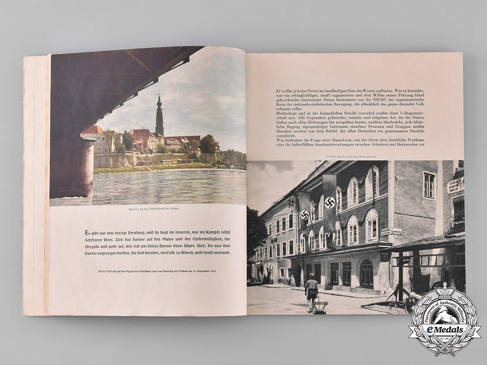 A Rare and Complete Edition of Ich Kämpfe (I Fight) (Ich Kämpfe Erstauflage). This is a rare and extremely well-preserved copy of “Ich Kämpfe” (“I Fight”). Measuring 214 mm (w) x 240 mm (h) and constructed of heavy off-white paper, the book features 100 pages of colour and black-and-white photographs alongside brief histories of Third Reich organizations, including the Schutzstaffel (SS), Sturmabteilung (SA), HJ, National Socialist Motor Corps (NSKK), National Socialist Flying Corps (NSFK), and others, many authored by prominent NSDAP figures. In extremely fine condition.