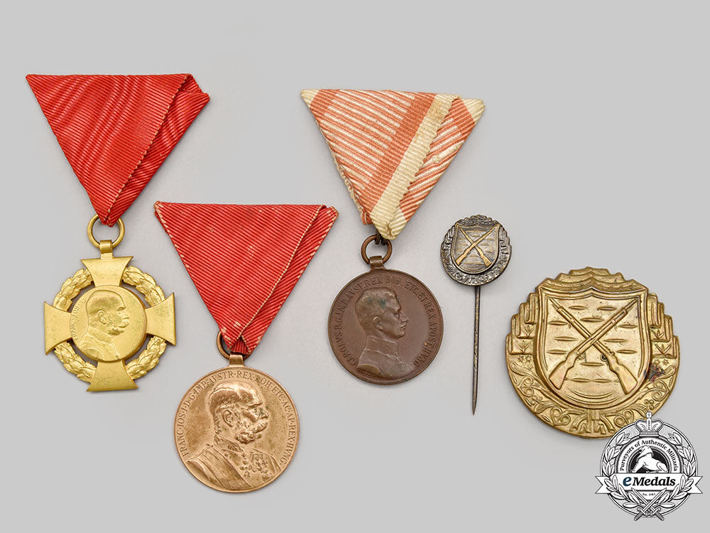1. Bravery Medal, III Class Bronze Grade, Karl I (1917-1918) (Tapferkeitsmedaille). Instituted in 1789. In bronze, measuring 31.5 mm x 35.3 mm (h) inclusive of its integral suspension, original triangular ribbon with hook and eye.