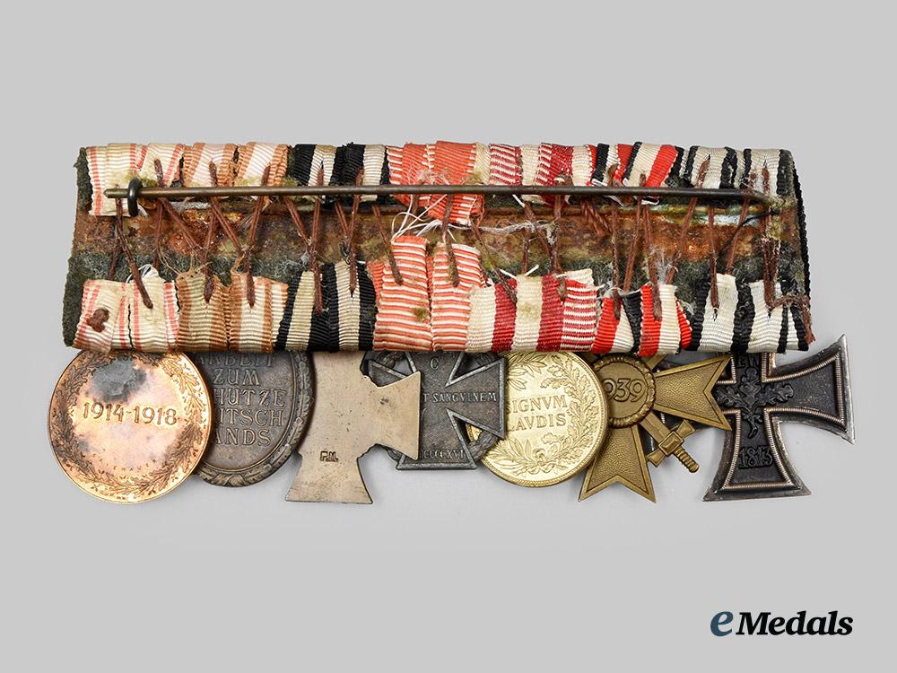 1. Mounted during the Second War, all on original ribbons and featuring seven awards including; Iron Cross Second Class 1914, iron with silver frame; War Merit Cross Second Class with Swords, bronze; A Military Merit Medal “Signum Laudis”, Karl I, in bronze gilt; A Karl Troop Cross, zinc; Hindenburg Cross, Non-Combatant issue, bronze; West Wall Medal, gilt zinc; First World War Commemorative Medal 1914-1918; very fine.