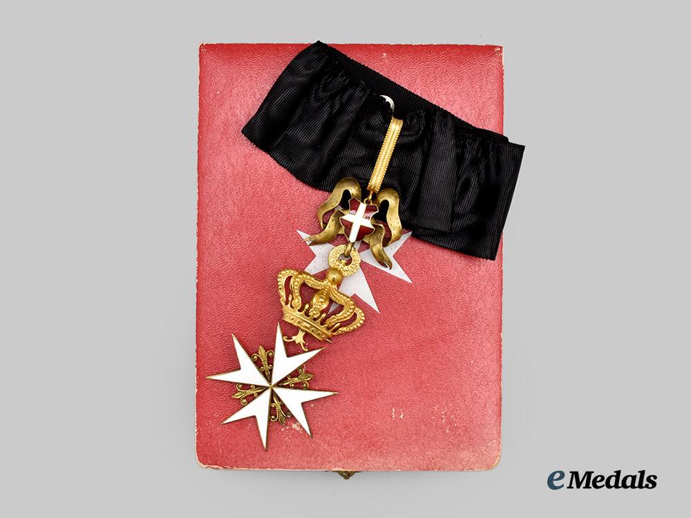 (Souveräner Ritter- und Hospitalorden vom Heiligen Johannes von Jerusalem, von Rhodos und von Malta). Exact institution date unknown. A superb cased Order of the Knight’s of Malta, Commander Cross, consisting of: