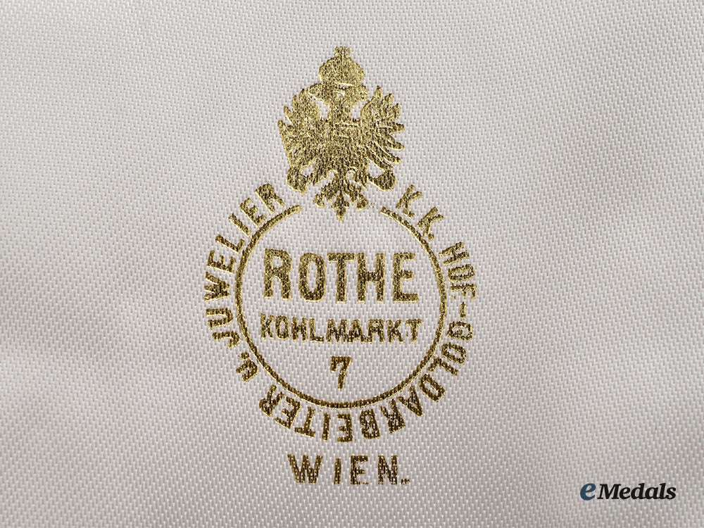 Contained in its original case of issue, red leatherette exterior, with a gilt Maltese cross on the exterior lid, the interior lid is marked ROTHE, with a black velvet recessed medal bed, measures 110mm (w) x 175mm (h) x 30mm (d), minimal wear, in extremely fine condition.
