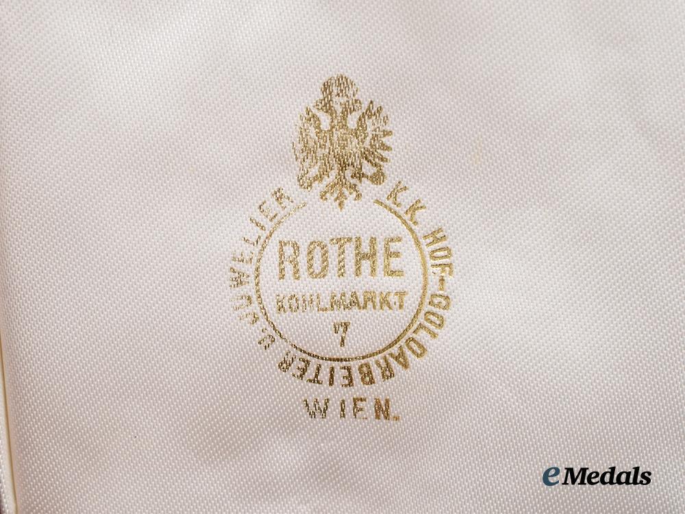 Contained in the original case of issue, a burgundy leatherette exterior with a maltese cross on the lid, the interior lid marked ROTHE denoting manufacturer, black velvet recessed medal bed with ribbon section above, measures 97 mm (w) x 170 mm (h