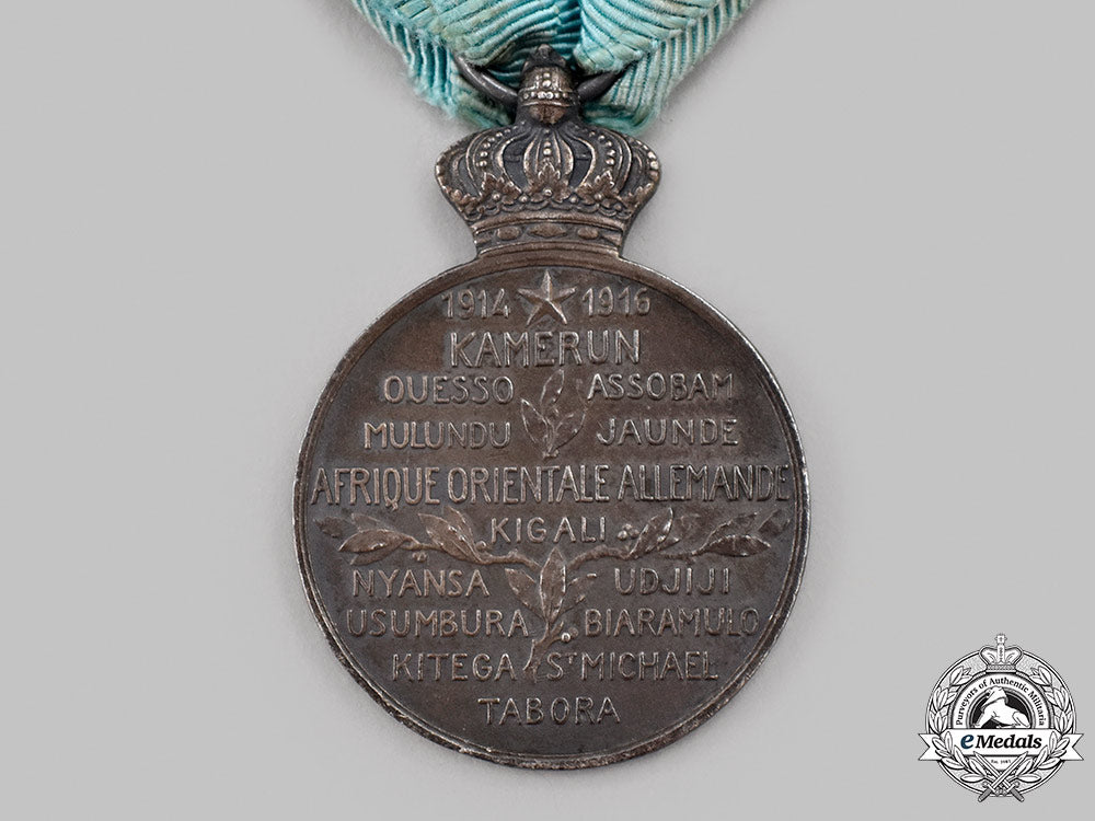 Footnote: The Commemorative Medal for the African Campaigns was instituted on February 21, 1917 and awarded to Belgian forces who engaged German troops in and around the latter’s African colonies of Cameroon, Tanganyika and South-West Africa. This is the first version of the medal with the dates 1914-1916; a second version bears the dates 1914-1917. The names on the reverse are those of the territories and places where engagements occurred. The numbers involved were relatively small, making the medal difficult to find.