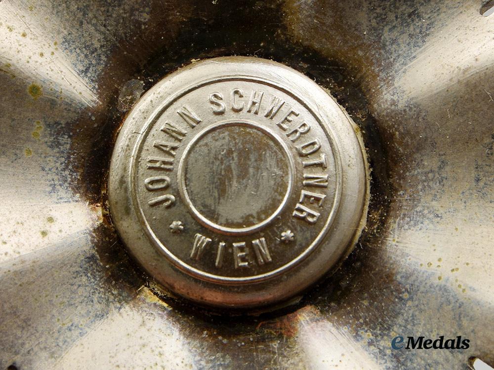 1. A Breast Star. A fabulous example of this award, of extremely fine Austrian jeweler manufacture, constructed of silver and gilded silver with multi-coloured enamels, consisting of a four-pointed multi-rayed silver cross bearing a white enameled Urdy cross adorned with green enameled thistles in the quadrants between the arms, the obverse with a central red enameled medallion bearing the Royal Cypher of its founder, surrounded by the inscription “ЗА ГРАЖДАНСКА ЗАСЛУГА”, the reverse plain, with a horizontal pinback, marked “Johann Schwerdtner, Wien”, measuring 99.1 mm (w) x 98.7 mm (l), weighing 81.22 grams, in better than extremely fine condition.