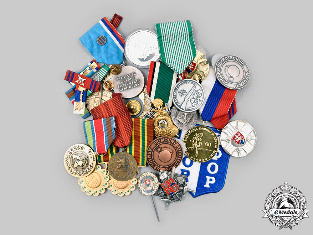 Czechoslovakia, Socialist Republic; Slovakia, Republic; Saudi Arabia, Kingdom; United Nations. A Lot Of Twenty Medals And Badges