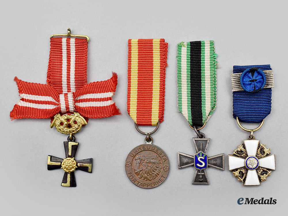 1. Order of the Cross of Liberty, Military Cross, III Class (Vapaudenristin suurristi): in bronze gilt with black enamels, maker marked "MWM" on the reverse.