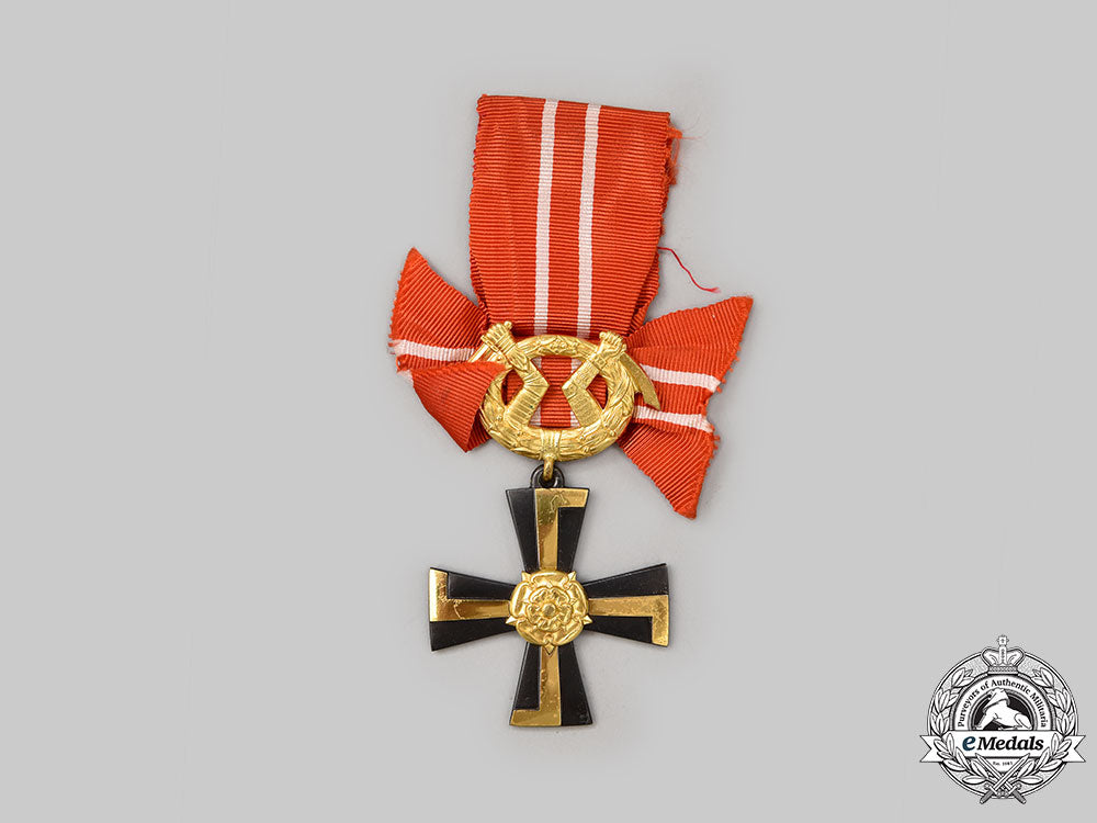 (Vapaudenristin ritarikunta). Instituted in 1918. Two-piece construction, in gilt and blackened iron, magnetic, dated "1941" on the reverse, measuring 39 mm (w) x 65 mm (h) inclusive of its trophy of arms suspension, very light contact, original ribbon, near extremely fine.