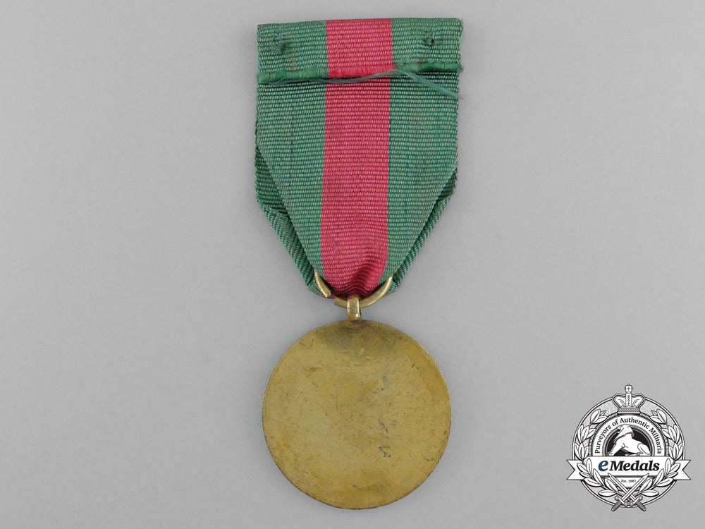 (French Indochina, South Vietnam): Bronze gilt, illustrating a stylized Chinese junk with two Chinese characters translated as loyalty inscribed on the ship's hull, inscribed in French "TERRITOIRE AUTONOME NUNG" above and "VIET-NAM" below, the inscriptions separated by a five-pointed star on either side, 34.5 mm, original ribbon, bruised, light contact, very fine.