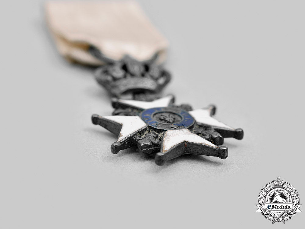 Instituted April 26, 1814. A reduced size decoration of the lily, presenting a white enamelled Maltese cross with a single Fleur-de-lis in each quadrant, the obverse medallion presents a silver Fleur-de-lis surrounded by a blue enamelled ring inscribed VIVE LA ROI, surmounted by a royal crown, reverse mirrors the obverse, mirrors 20.67mm (w) x 34.6mm (h), weighs 5.0 grams (including ribbon), heavy enamel damage, very dark patina, in better than fine condition.