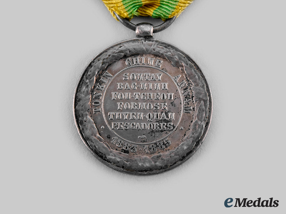 Footnote: The medal was instituted on the September 6, 1885, and awarded to the Army and Navy who served in the 1884-1885 campaign in north-eastern Indochina (North Vietnam), otherwise known as the Sino-French War. Both the Army and Navy versions have six common battle honours, while the Navy version incorporates seven battle honours, with "CAU-GIAI" at the top of the list,
