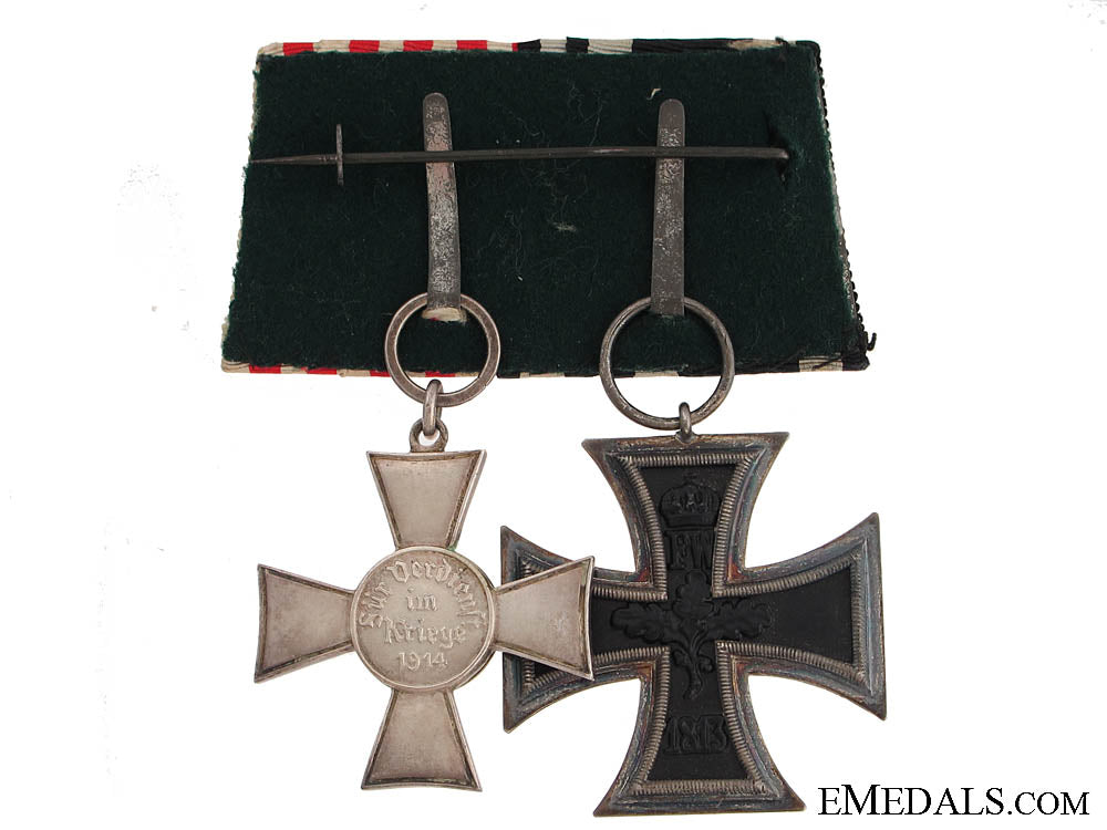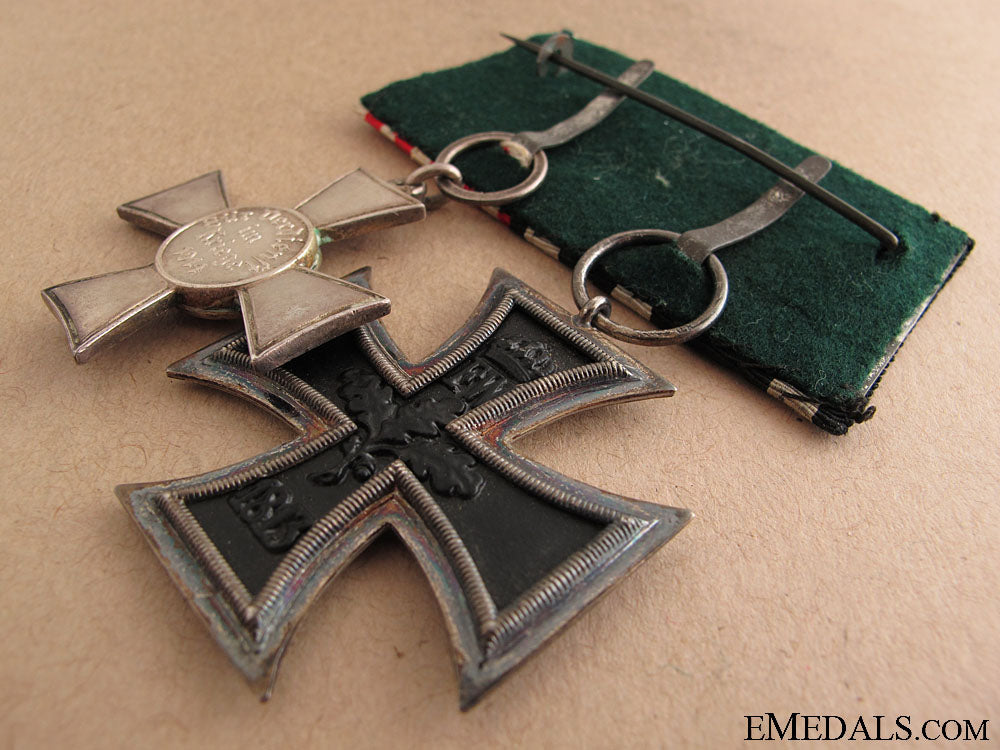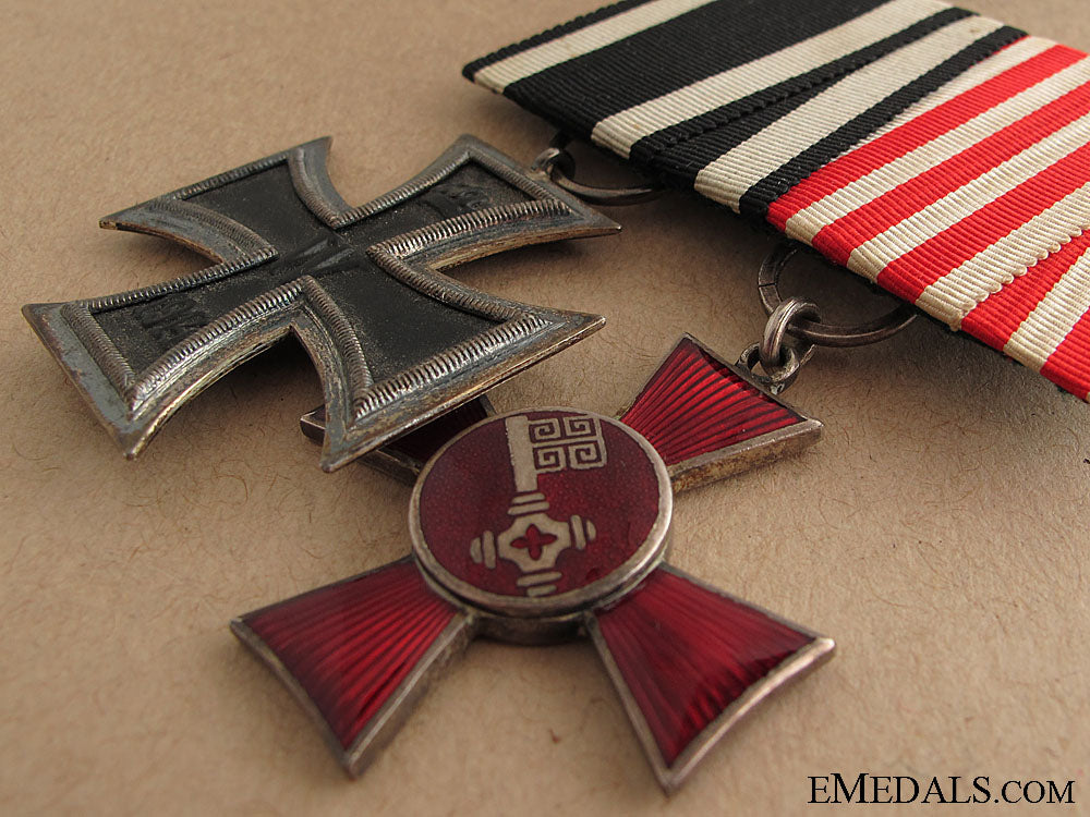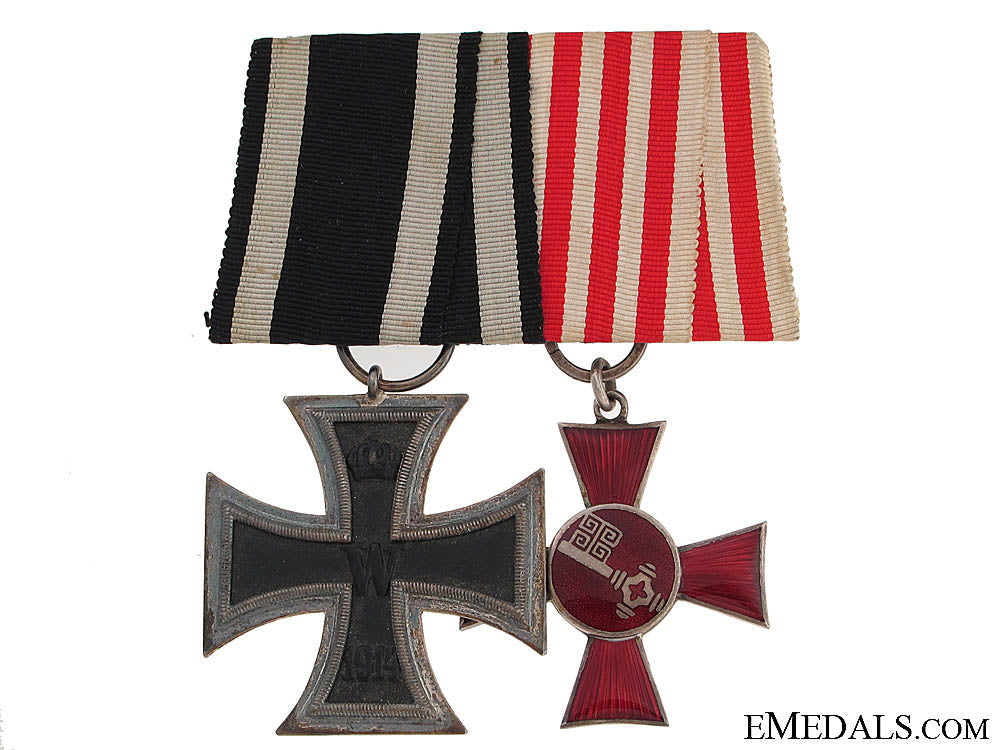 An Imperial Pairing - Mounted as worn German style, comprising: Iron Cross 2nd. Class 1914, magnetic, ring marked KO; Bremen Hanseatic cross, silvered, enameled, no enamel damage; in extremely fine condition