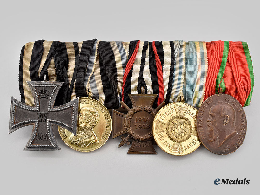 (Ordensschnalle). A medal bar for a Bavarian First World War combatant, featuring five decorations, including: