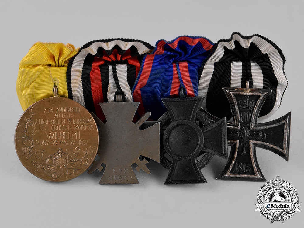 Germany, Empire. A First War German Medal Bar With Four Medals, Awards, And Decorations