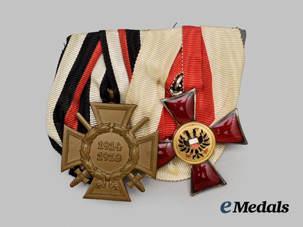 (Ordensschnalle). A medal bar for a First World War combatant featuring two decorations, including: