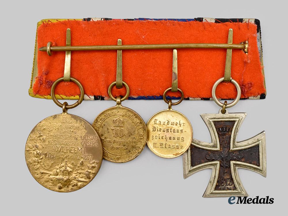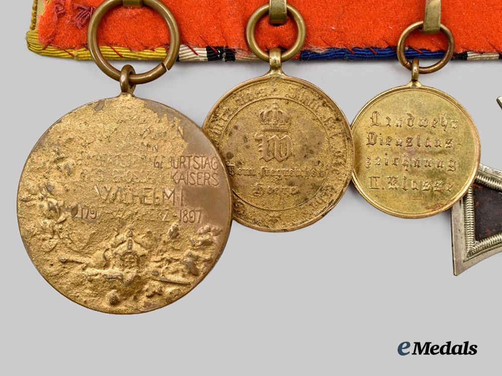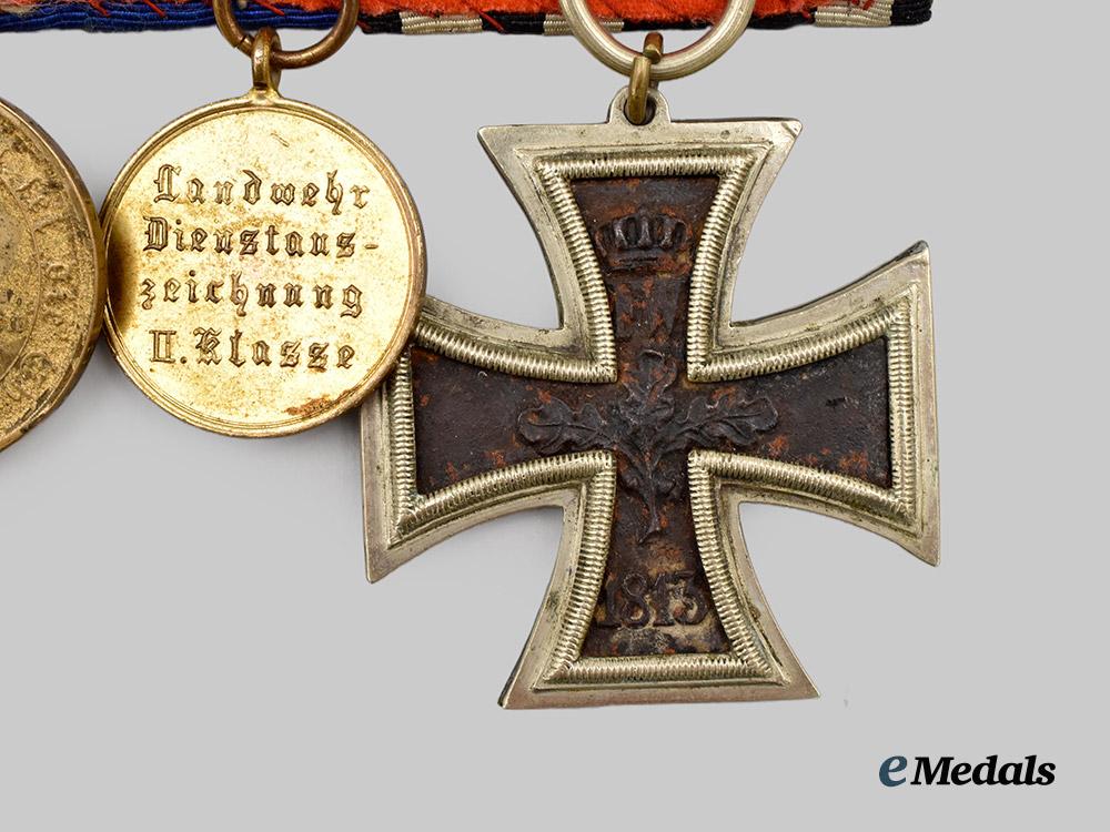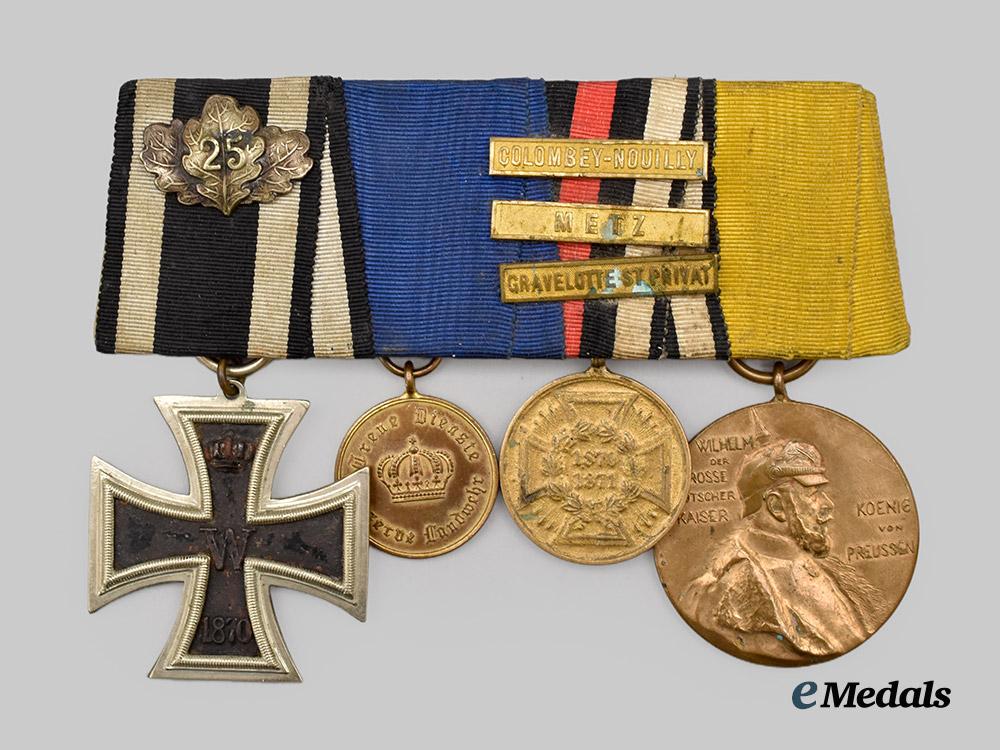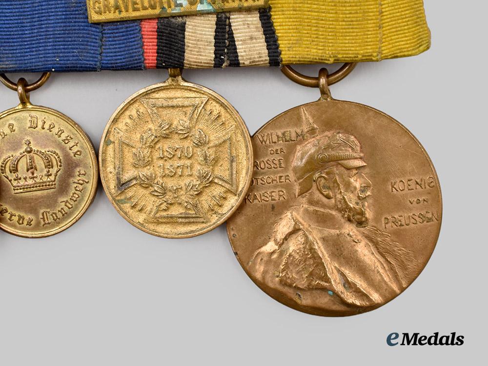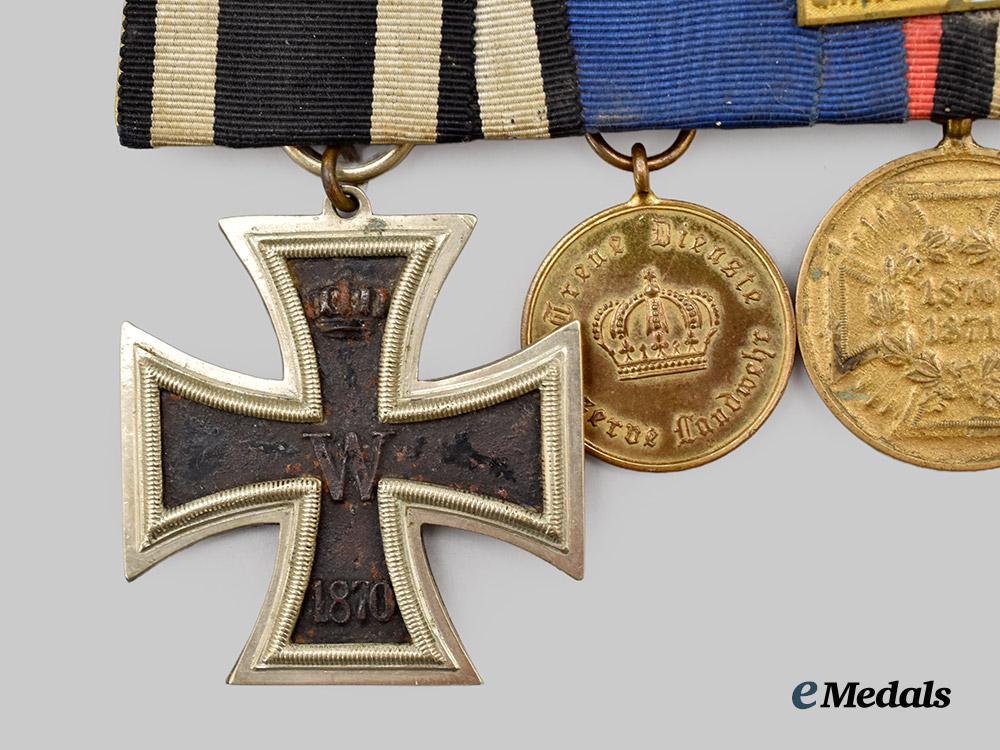 (Ordenschnalle eines Preußischen Veteranen des Frankreichfeldzugs 1870/71). A medal bar to a distinguished combatant of the Franco-Prussian War featuring four decorations, including: